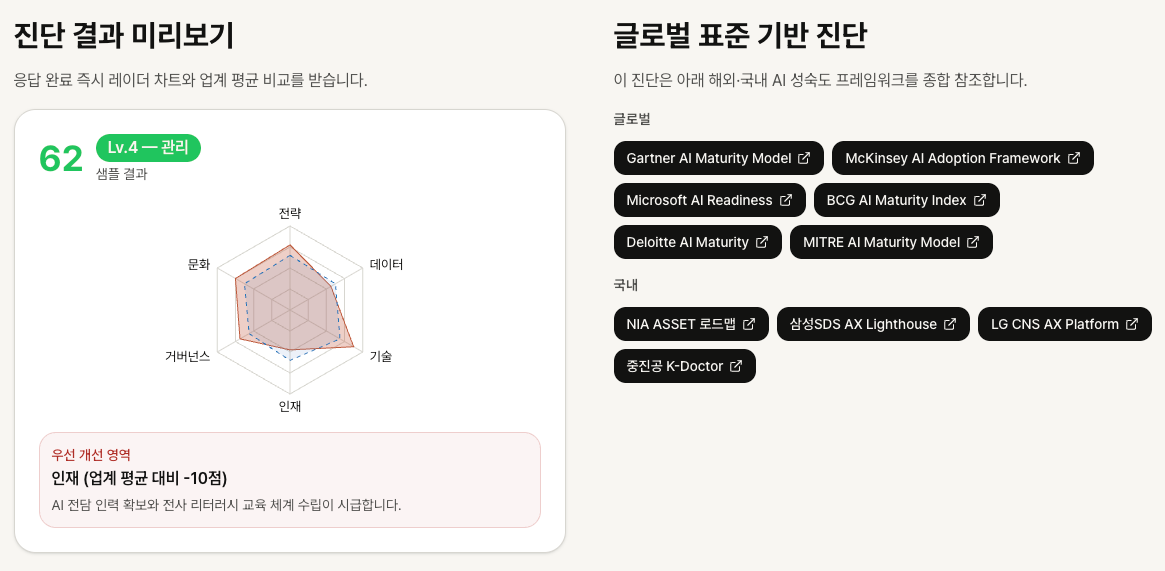 "우리 조직이 AI를 도입할 준비가 됐는가"라는 질문에 데이터 기반의 답을 드립니다.