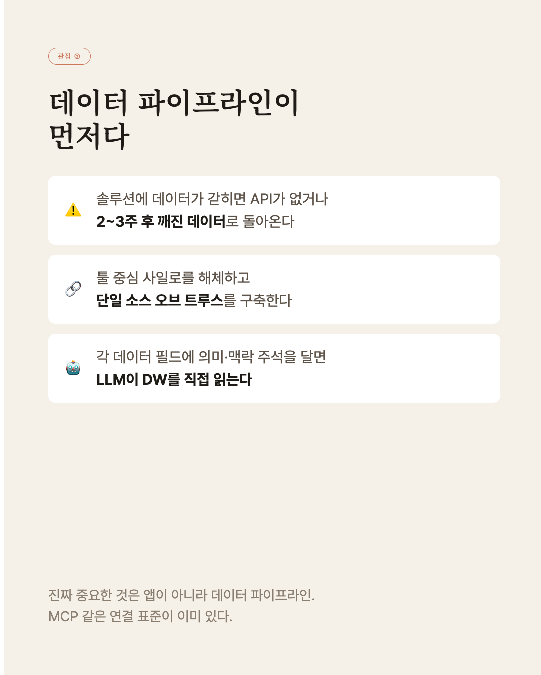 "진짜 중요한 것은 앱이 아니라 데이터 파이프라인."