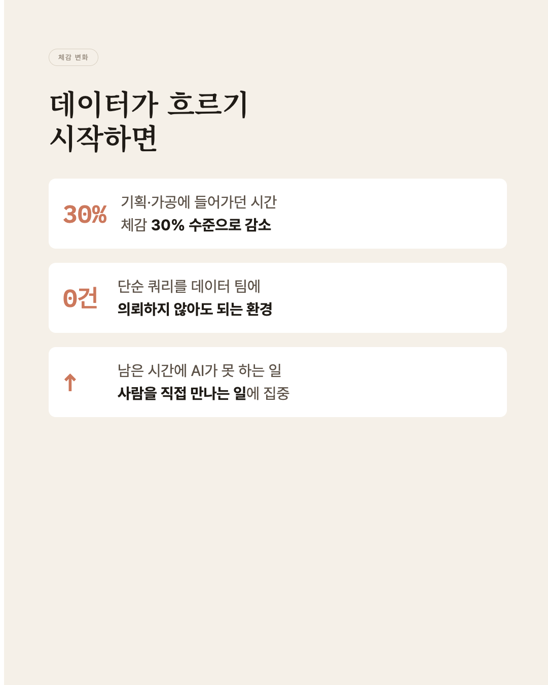 기획·가공 시간은 체감 30% 수준으로 줄었고, 남은 시간에 사람을 직접 만나는 일에 집중할 수 있게 됐다.