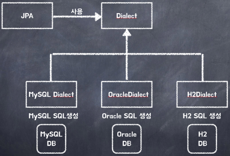 - 만약 DB가 변경되더라도 JPA에게 알려주면 간단하게 변경이 가능하다.