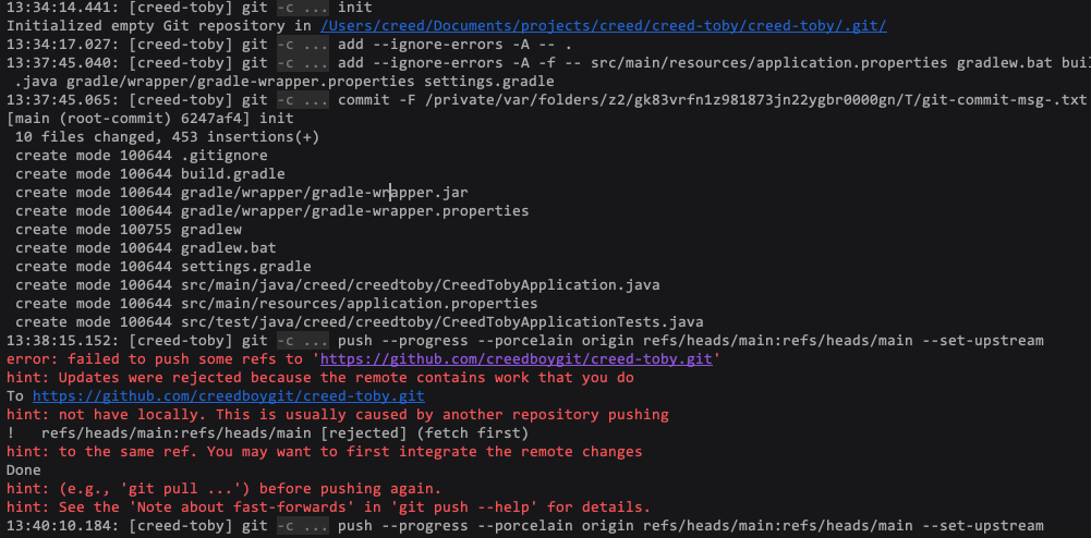 나의 경우에는 README를 건드렸던게 중요하지 않았어서 강제로 push했다.